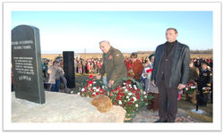 ![]() | ![]() На территории г. Копысь, на берегу Днепра, в конце октября 2008 года состоялось открытие памятника воинам 18-й стрелковой дивизии | ![]() |